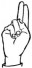 На ћирилици написано МИОДРАГ ШАРЕНАЦ састоји се из 14 слова [?]. Исписано ћириличном једноручном азбуком за глувонеме: